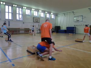 A pályaválasztási együttműködés keretében játékos sportvetélkedőn vehettek részt gimnáziumunk és a törökszentmiklósi általános iskolák csapatai. A jó hangulatú délután alkalmával sorversenyeken mérhették össze ügyességüket a gyerekek.