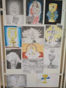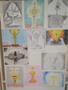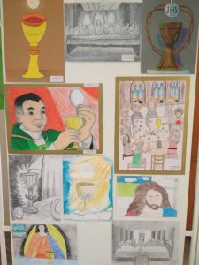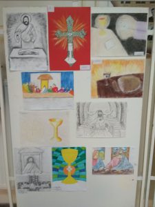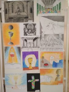 Arra voltunk kíváncsiak, hogy a Lukács Evangéliumból vett idézetet ki hogyan képzeli el. Volt, aki Az utolsó vacsora jelenetét ábrázolta, mások pedig az oltáriszentséget.