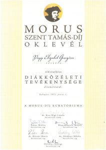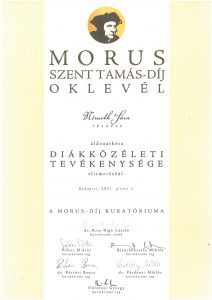 Németh Sára 12.a és Papp Elizabet Georgina 12.c osztályos tanulóink Morus-díjban részesültek.