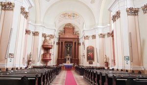 Első programunk szentmise a tatai városrész főterén álló Szent Kereszt Plébánia templomban. Lenyűgöző látvány volt a közelmúltban felújított templom belső tere is. Meglepetésünkre az Atya nagyon kedvesen köszöntötte a csoportunkat.