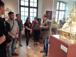 Másnap, szombaton, korán indultunk Nagyváradra. Először a Nagyváradi Székesegyház előtt látható Szent László szobrot koszorúztuk meg, és együtt elénekeltük a Himnuszt, majd a Nagyváradi Római Katolikus Székesegyházat, a legnagyobb barokk stílusban épült templomot néztük meg belülről is. A templomot még Szent László alapította, és valószínűleg 1116-ban temették ide, a Nagyboldogasszonynak szentelt templomba. Ezt követően átmentünk a püspöki palotába, a Szent László Látogatóközpontba, ahol számos, ebből a korból maradt liturgikus emléket és a híres Szent László ereklyetartó hermát láthattuk. Az ereklye Szent László koponyájának egy darabja, a herma pedig egy hatvan centiméter magas aranyozott ezüst mellszobor, amelyik híven követi Szent László arcvonásait.