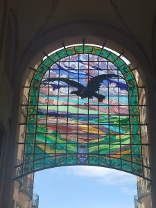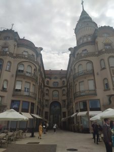 Tovább haladva a belvárosba érkeztünk, ahol a lélegzetelállító Fekete Sas szállón, Nagyvárad legszebb szecessziós épületén keresztül jutottunk a főtérre és a sétáló utcába. A fekete sast ábrázoló színes ablaküveg a város szimbóluma lett.