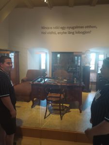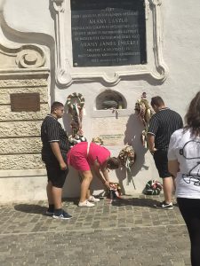 Buszra szálltunk, a következő megálló Nagyszalonta, Arany János szülővárosa volt. A Csonka tornyon lévő Arany János emléktáblát megkoszorúztuk, és itt is elénekeltük a Himnuszt. Felmentünk a négyemeletes toronyba, és szintről szintre egyre többet tudtunk meg Arany János, mint például azt is, hogyan itta a költő a kávéját.