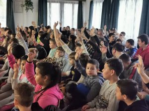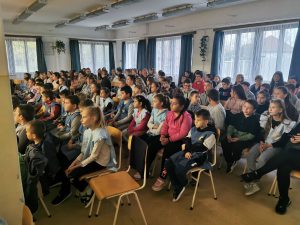 Egy rövid interaktív játék után a világ minden tájáról ismerős dallamokat hallhattunk. A gyerekek nagyon élvezték, többen a ritmusra lóbálták a lábukat, vagy ütögették a térdüket. A rövid koncert jól sikerült, reméljük lesz még hasonlóban részünk.