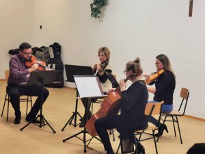 A Zene világnapja alkalmából vonós négyes koncertet egyeztettünk le a Szolnoki Szimfonikus Zenekar négy tagjával. Sajnos az október 7-i koncert elmaradt betegség miatt, de a mai napon, október 28-án tudtuk pótolni. Az egész iskola izgalommal várta az eseményt.