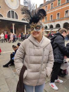 Egy óra pihenő után elindultunk a karnevál irányába. Következő állomásunk Mestre városa volt, ahonnan vonattal utaztunk be Velencébe.