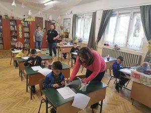 A héten tartottuk meg az utolsó iskolanyitogató foglalkozásunkat, ahol a leendő elsős gyermekek és szüleik ismerkedhettek meg egy kicsit jobban iskolánkkal és az itt tanító pedagógusokkal is. A gyerekek egy játékos feladatlapot töltöttek ki közösen a tanító nénikkel, ahol ismerkedtek a színekkel, formákkal, irányokkal, a szülők pedig bejárták az iskola épületét.