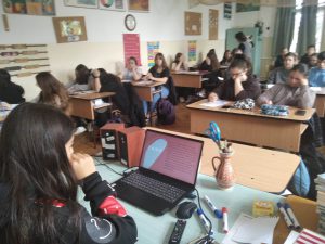 A 7. évfolyamos gyerekek vetélkedője a „Határtalanul” programjaira készülve a Pánthyban