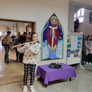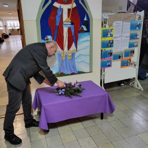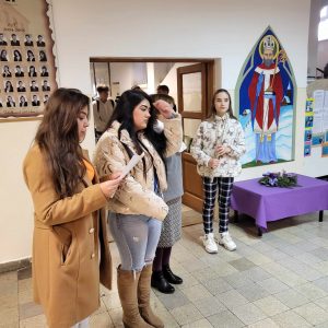 Gimnáziumunkban a diákok közreműködésével meggyújtottuk az öröm gyertyáját is az adventi koszorún.