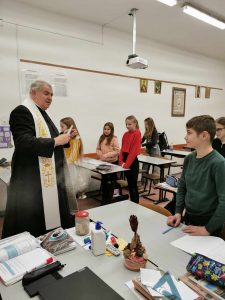 Krisztus áldja meg e hajlékot! Vízkereszt ünnepéhez kapcsolódva Bordás Péter plébános, a gimnázium lelkivezetője megáldotta az iskola termeit. Imádságában a békét, egészséget kérve számunkra az új esztendőben.